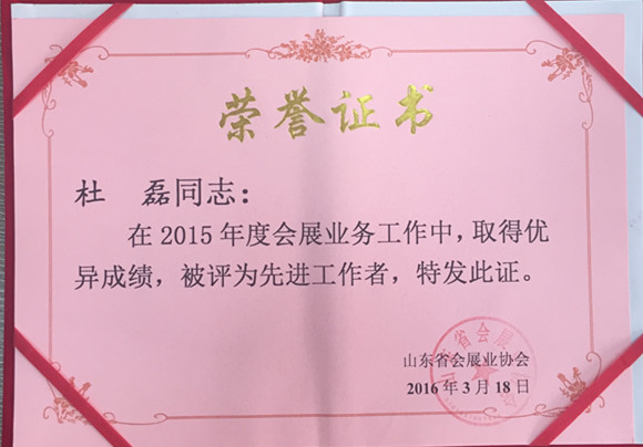 2015年度山東會展行業(yè)先進(jìn)工作者。 記者 李曉夢/攝