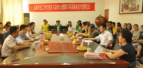 2012年6月26日下午,中貿(mào)國際與山東電子職業(yè)技術學院舉辦了會展策劃與管理專業(yè)“工學交替”實習總結(jié)大會暨校外實習基地簽約授牌儀式。山東省會展業(yè)協(xié)會常務副秘書長燕飛、山東中貿(mào)國際經(jīng)濟貿(mào)易推廣服務中心主任杜磊及三位項目經(jīng)理應邀出席,山東電子職業(yè)技術學院王協(xié)瑞副院長、管理系梁會亭主任及部分教師、輔導員和會展專業(yè)學生參加了此次會議。