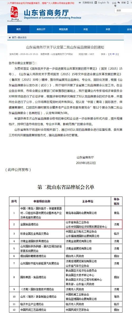 全國食品博覽會(huì)榮獲山東省品牌展會(huì)的殊榮,不僅是省商務(wù)廳對(duì)展會(huì)走向品牌化權(quán)威肯定,也是對(duì)近年來全國食品博覽會(huì)在會(huì)展產(chǎn)業(yè)