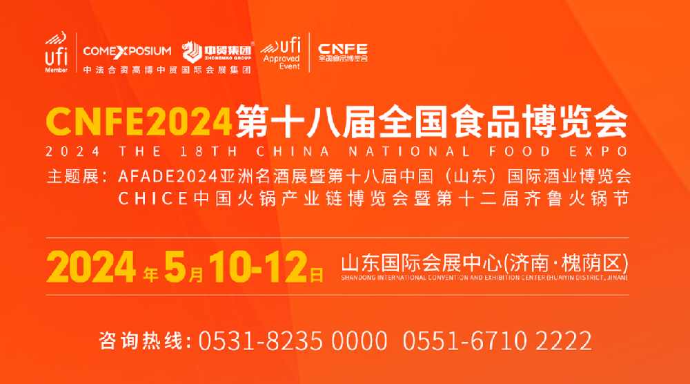 CNFE2024第十八屆全國食品博覽會將于2024年5月10日-12日在濟(jì)南市山東國際會展中心(槐蔭區(qū))盛大舉辦?!局黝}展:AFADE2024亞洲名酒展暨第十八···